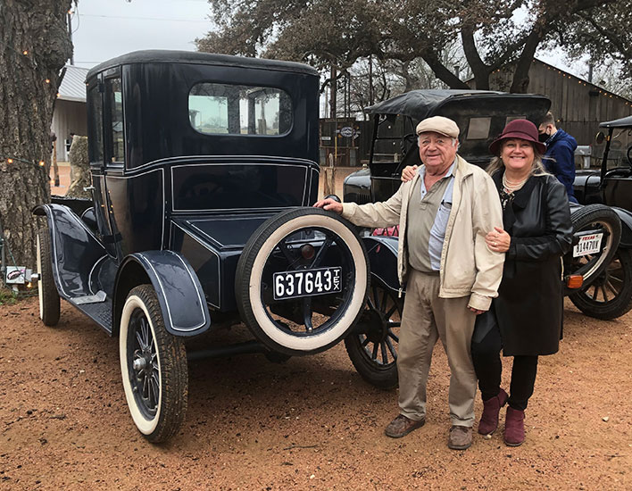 Ronnie and Laura Bitterly and their 1917 Ford Model T touring car at the 2014 tour of San Antonio's historic missions
