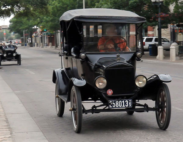 Ronnie Bitterly in his 1917 Ford Model T touring car on Alamo Plaza during the 2015 San Antonio Ford Model T Show