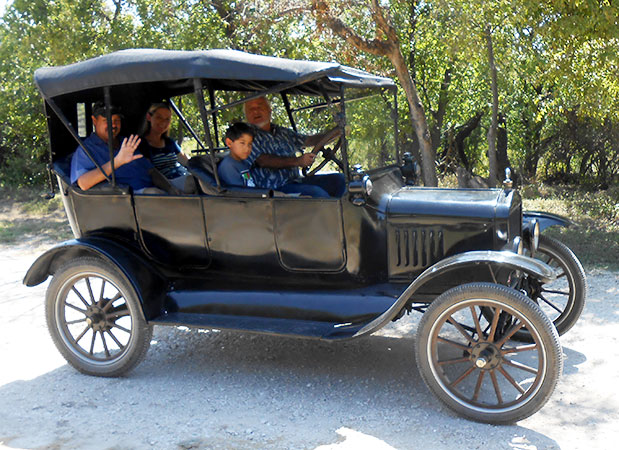Ronnie Bitterly giving rides to visitors in his 1917 Ford Model T touring car during the 2015 San Antonio Ford Model T Show