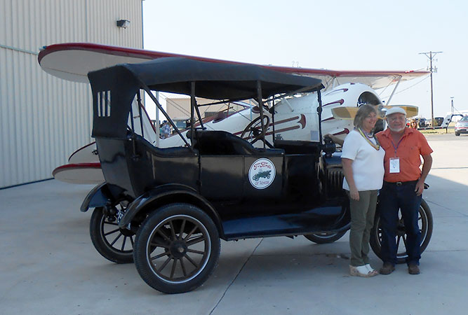 Ronnie and Laura Bitterly with their 1917 Ford Model T touring car during the Fall 2014 Kingsbury Aerodrome antique aircraft fly-in