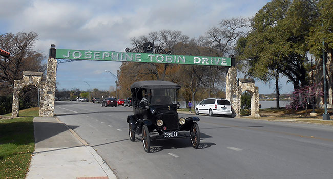 Ronnie Bitterly on Alamo Plaza during the 2013 San Antonio Ford Model T Show's downtown cruise