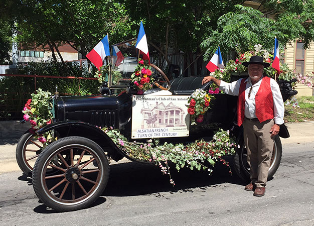 Ronnie Bitterly with "Clara," his 1917 Ford Model T touring car at the 2016 Battle of Flowers parade