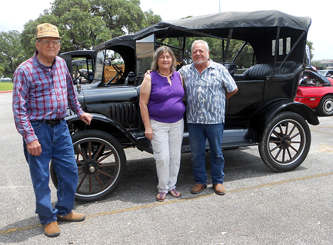 Ronnie & Laura Bitterly with Laura's father, Sonny, with "Clara," their 1917 Ford Model T touring car at the 2016 Shriner charity car show