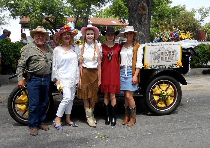 Ronnie Bitterly with his passengers and his 1917 Ford Model T before the 2017 Battle of Flowers parade