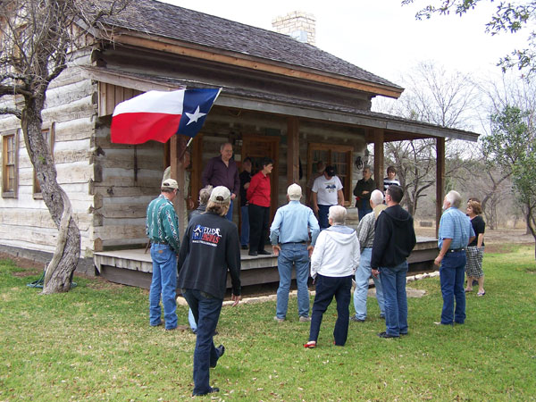 T owners congregate at a log cabin near Castroville during a club tour of Medina County