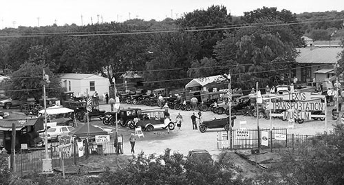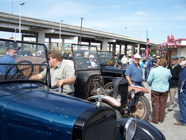 T owners congregate in the parking lot of the Pig Stand on Broadway during a downtown San Antonio cruise during the annual Ford Model T Show