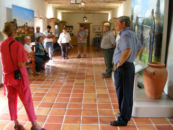 NPS Ranger Case Griffing provides history to Model T owners at Mission San Juan, San Antonio