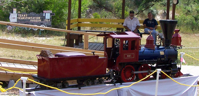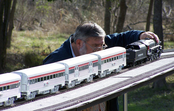 Steve Campa adjusting his "G" scale train at the Texas Transportation Museum in San Antonio