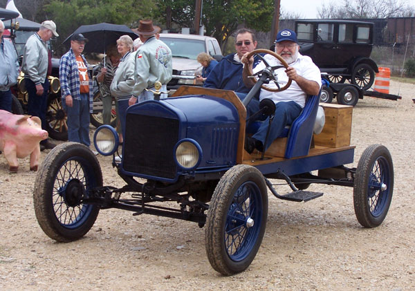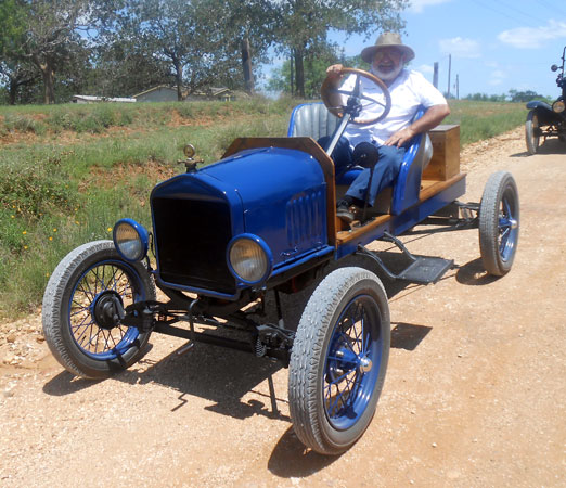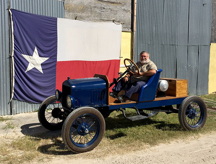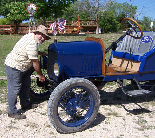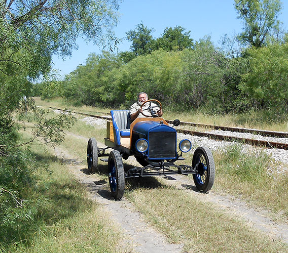 Steve is one of those quiet but extremely capable men we so often find in the Model T world. It takes a strong character to decide to own, restore, maintain and drive a Model T in the 21st century. All of us are, to a certain extent, a breed apart. Steve has numerous other quite demanding hobbies as well. He delights in live steam trains, owning and operating a phenomenal 7.5 inch gauge locomotive that he brought with him to our last Model T show at the Texas Transportation Museum. He built a set of tracks in his large back yard in Floresville to operate it on. Steve also builds and operates model boats and airplanes. He enjoys restoring old “hit and miss” agricultural motors, and, if that was not enough fun for one guy, he also builds and operates model circuses, a hobby he shared with his father.