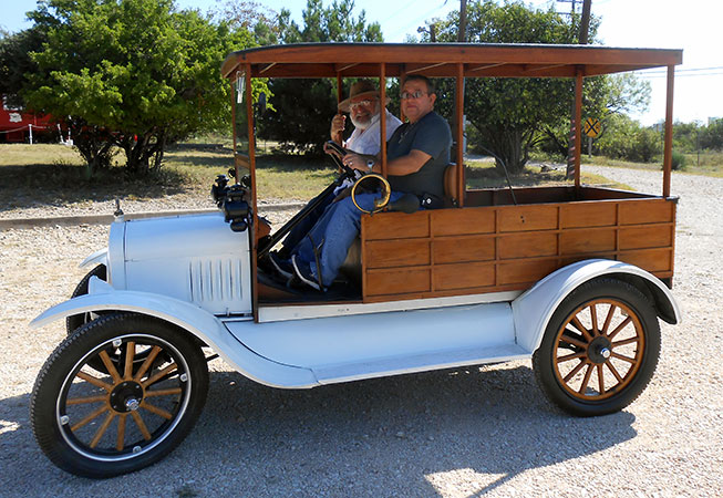 Steve and Eddie Campa in Steve's 1920 Model T depot hack at the 2015 San Antonio Ford Model T Show