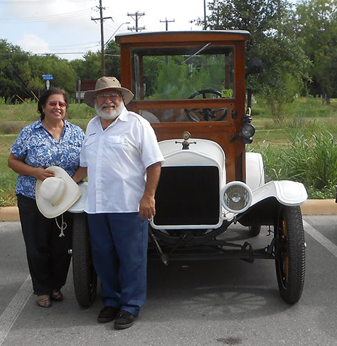 Steve & Esther Campa and 1920 Model T Torpedo during the 2013 TFOT tour of San Antonio's historic Missions