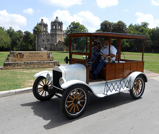 Steve Campa's 1920 Model T depot hack at the 2014 tour of San Antonio's historic missions