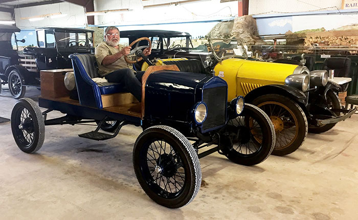 Steve Campa in his 1920 Model T depot hack during the 2016 Missions Tour