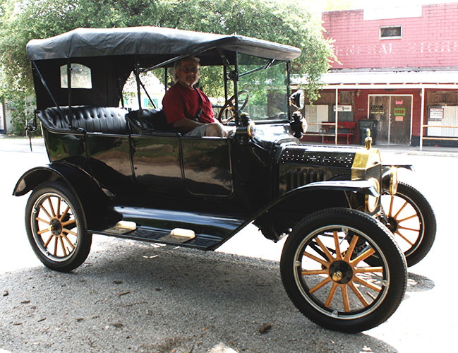 Steve Extevez in hs 1915 Ford Model T touring car during the Austin T club run to Lockhart State Park in September 2020
