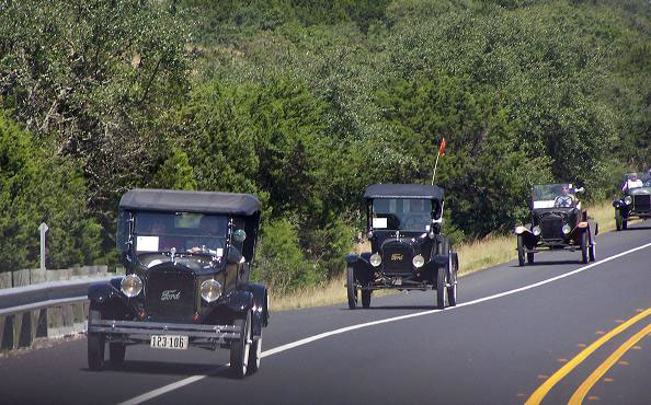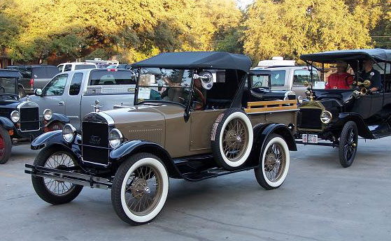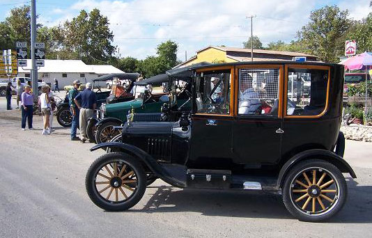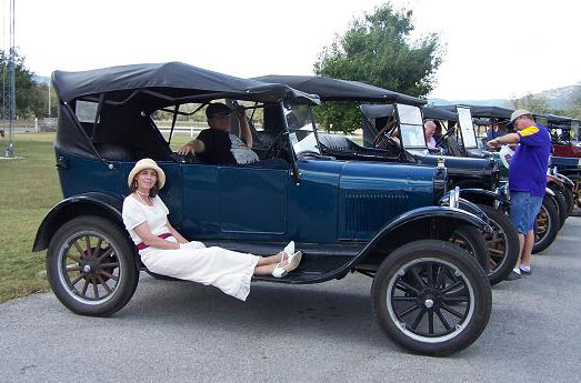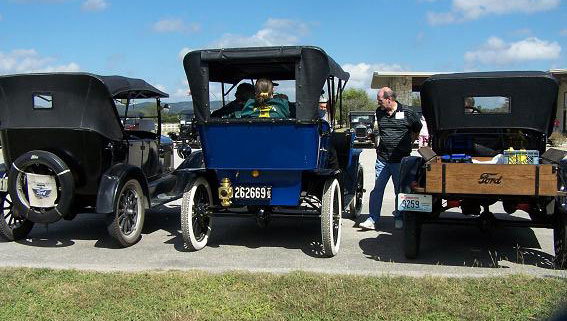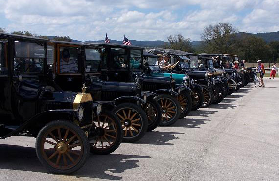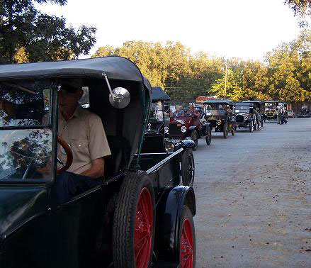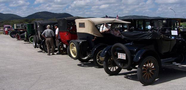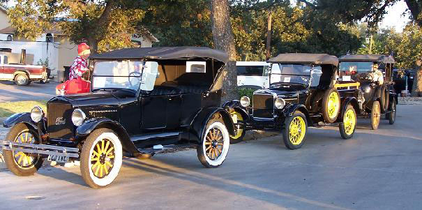 The "Texas T Party" has been the largest annual gathering of Model T Fords in Texas since they began in 1977, The event usually attracts about 100 Ford Model Ts. Organized by the "Space City Ts" based in Houston, or by individuals authorized by them, the event is held in a different place across the state every year in early October. There is always a good number of "T Fords of Texas" members who participate. Here are links to pages with pictures of the event in various locations over the years.