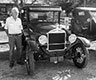 >Tom Campbell with his 1926 and 1911 Model T roadsters at a Shriner charity car show
