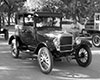 Tom Campbell driving his 1915 Ford Model T touring car on Alamo Plaza in San Antonio