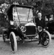 Tom Campbell with his 1926 Model T roadster at a Roaring 20s fashion shoot, March 2012