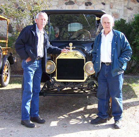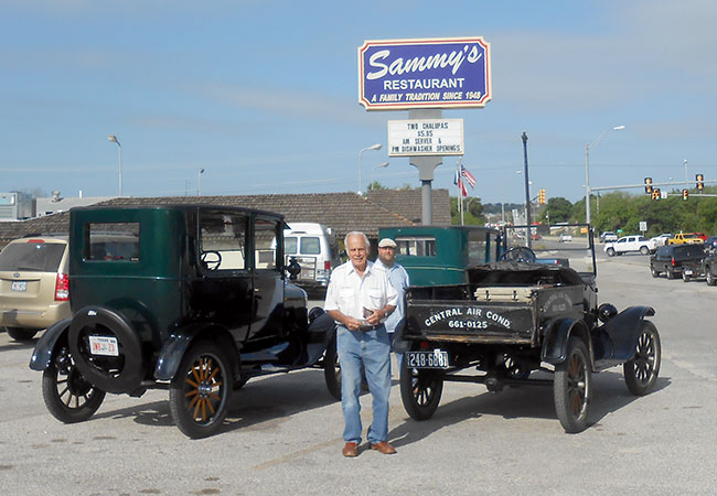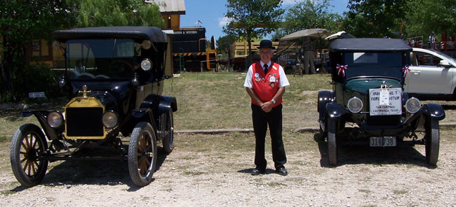 Tom Campbell with his 1915 Ford Model T touring car and his 1926 Ford Model T runabout at the San Antonio Ford Model T Show at the Texas Transportation Museum