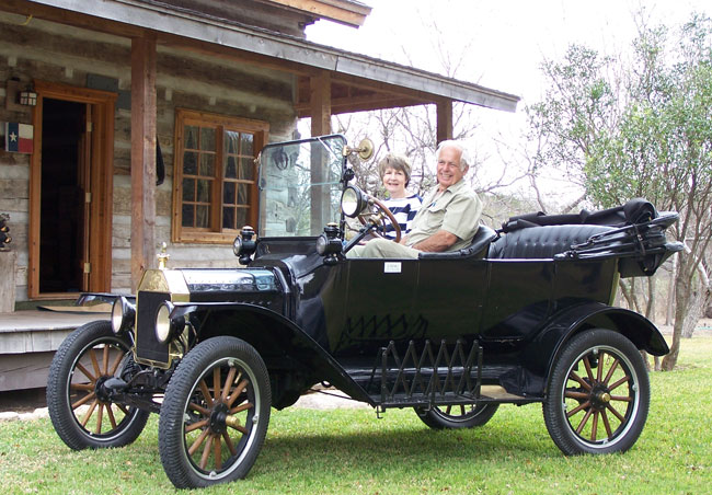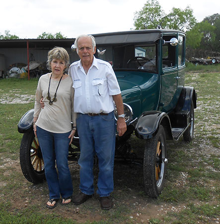 Tom and Sharron Campbell with their 1915 Model T touring car in Castroville at the beginning of the Medina County tour which Tom leads