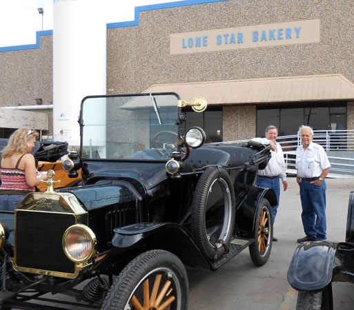 Tom Campbell with Mac Morris, owner of the Lone Star Bakery, during the T Fords of Texas Spring Tour, April 2014