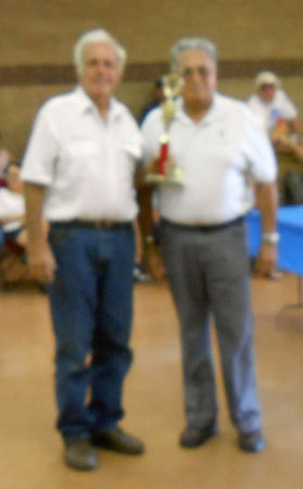 >Tom Campbell accepting an award for his 1926 Ford Model T roadster at the 2014 Shriner Car Show