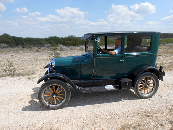 Tom Campbell in his 1926 Ford Model T Tudor during the 2017 Texas T Party