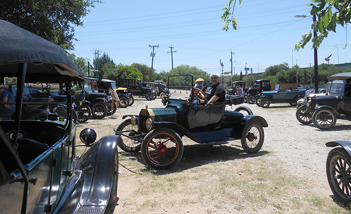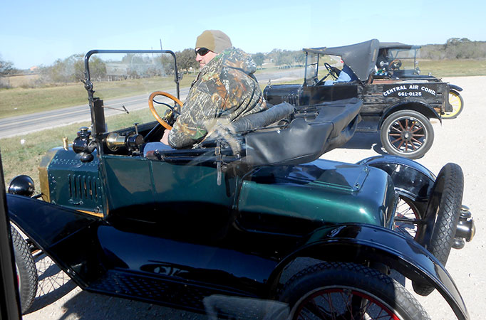 Wayne Johnson in his 1915 Ford Model T with other San Antonio T club members during the 2017 Texas T Party