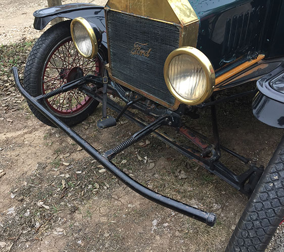 The most interesting front bumper on Wayne Johnson's 1915 Ford Model T runabout during a club tour, January 2017.