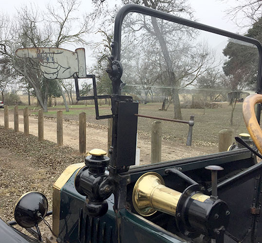 The most interesting turn signal on Wayne Johnson's 1915 Ford Model T runabout during a club tour, January 2017.