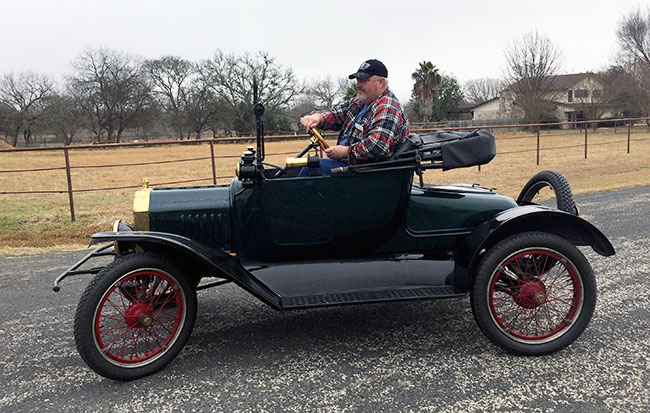 Wayne Johnson in his 1915 Ford Model T runabout during the 2017 Texas T Party