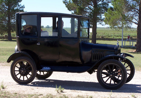Willie Cordes in his 1915 Ford Model T center door sedan