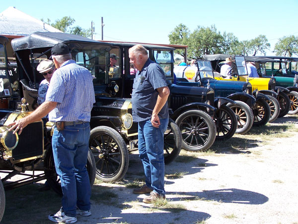 Willie Cordes, in the center of the picture, visiting with other T owners during the 2014 Texas T Party in San Angelo
